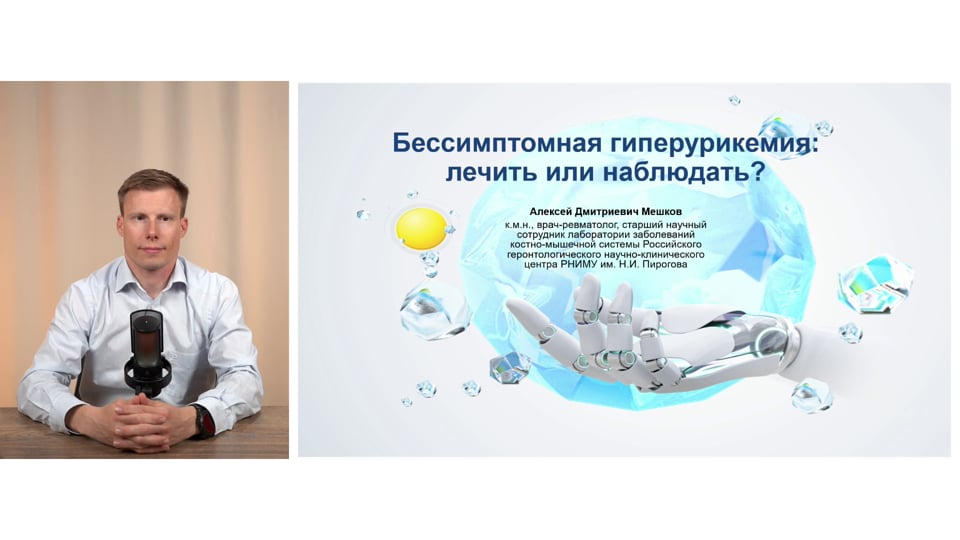 В лекции мы подробно обсудим тактику ведения пациентов с гиперурикемией, но без манифестной подагры, с учетом сопутствующих коморбидных состояний.